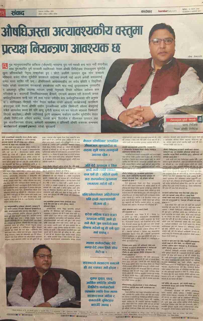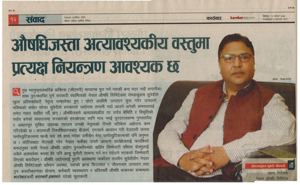 औषधिजस्ता अत्यावश्यकीय वस्तुमा प्रत्यक्ष नियन्त्रण आवश्यक छ ।